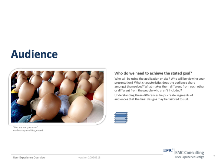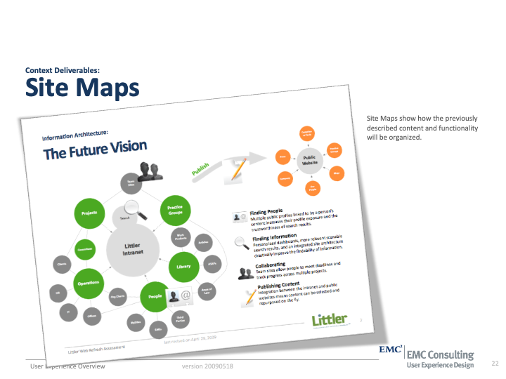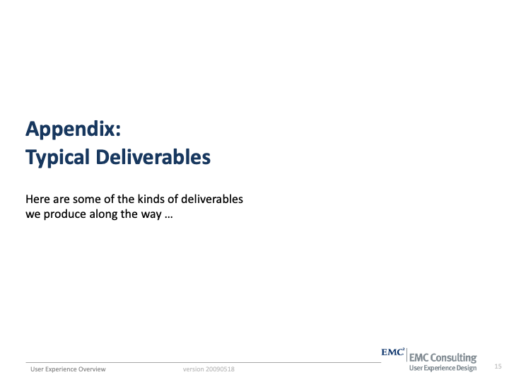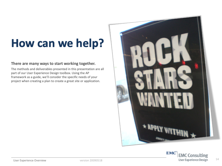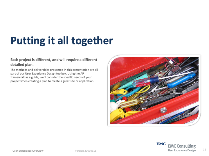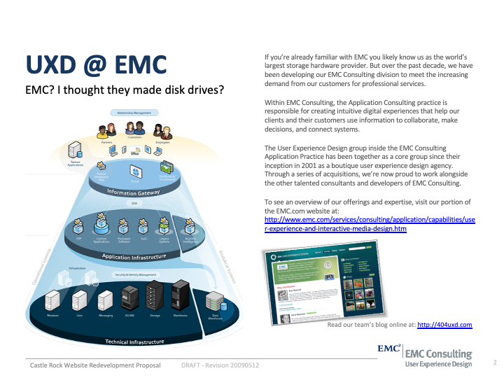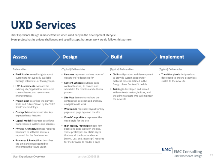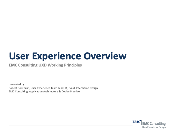 User Experience Methods I'v Been Practicing since EMC 2007-2012 where I served as UX Team Lead and Sr Solutions Architect on 40 high profile corporate intranet designs in a period of 50 months.