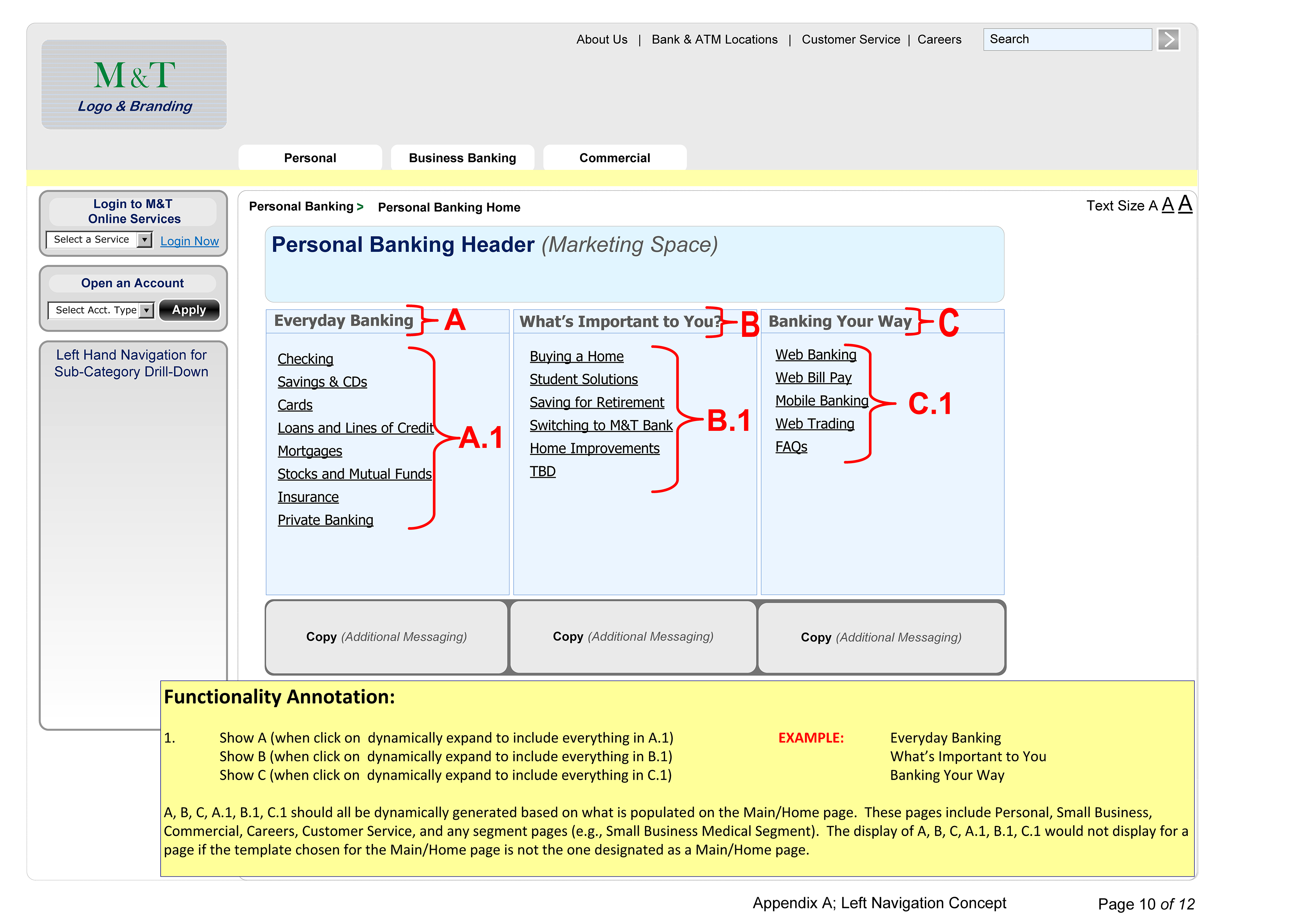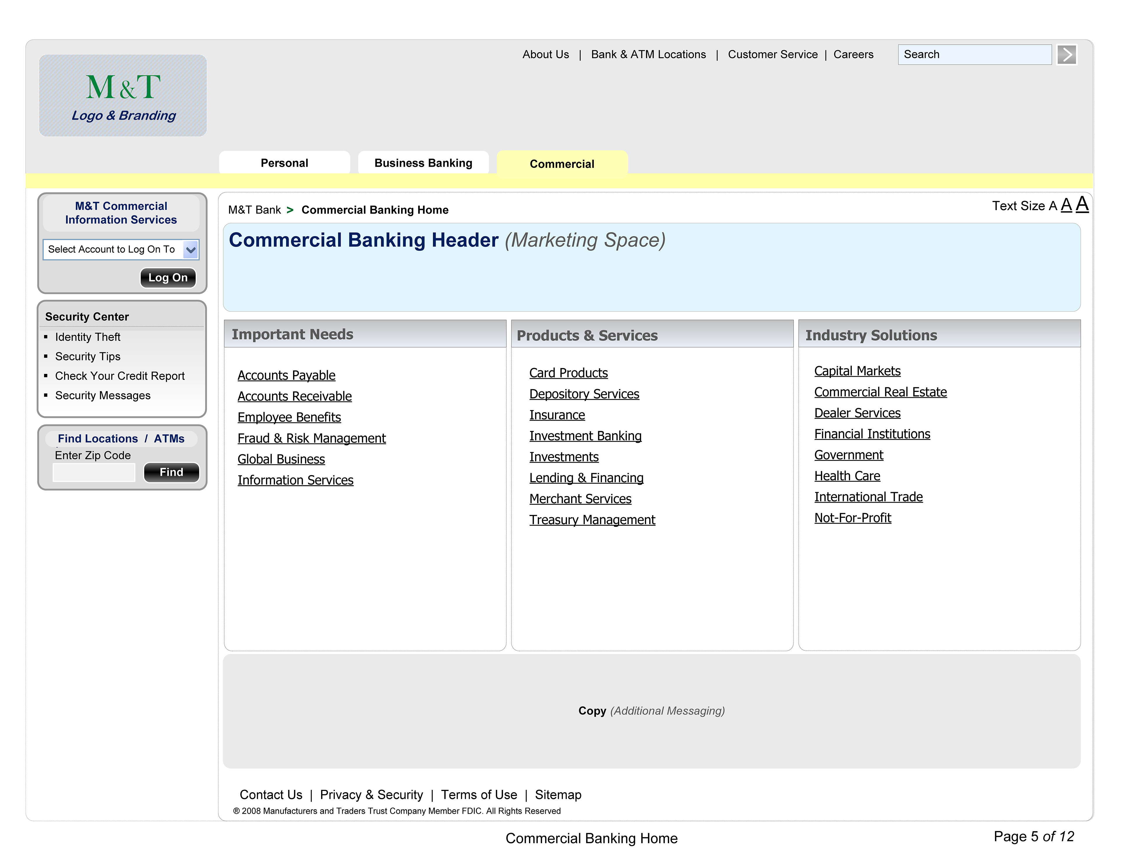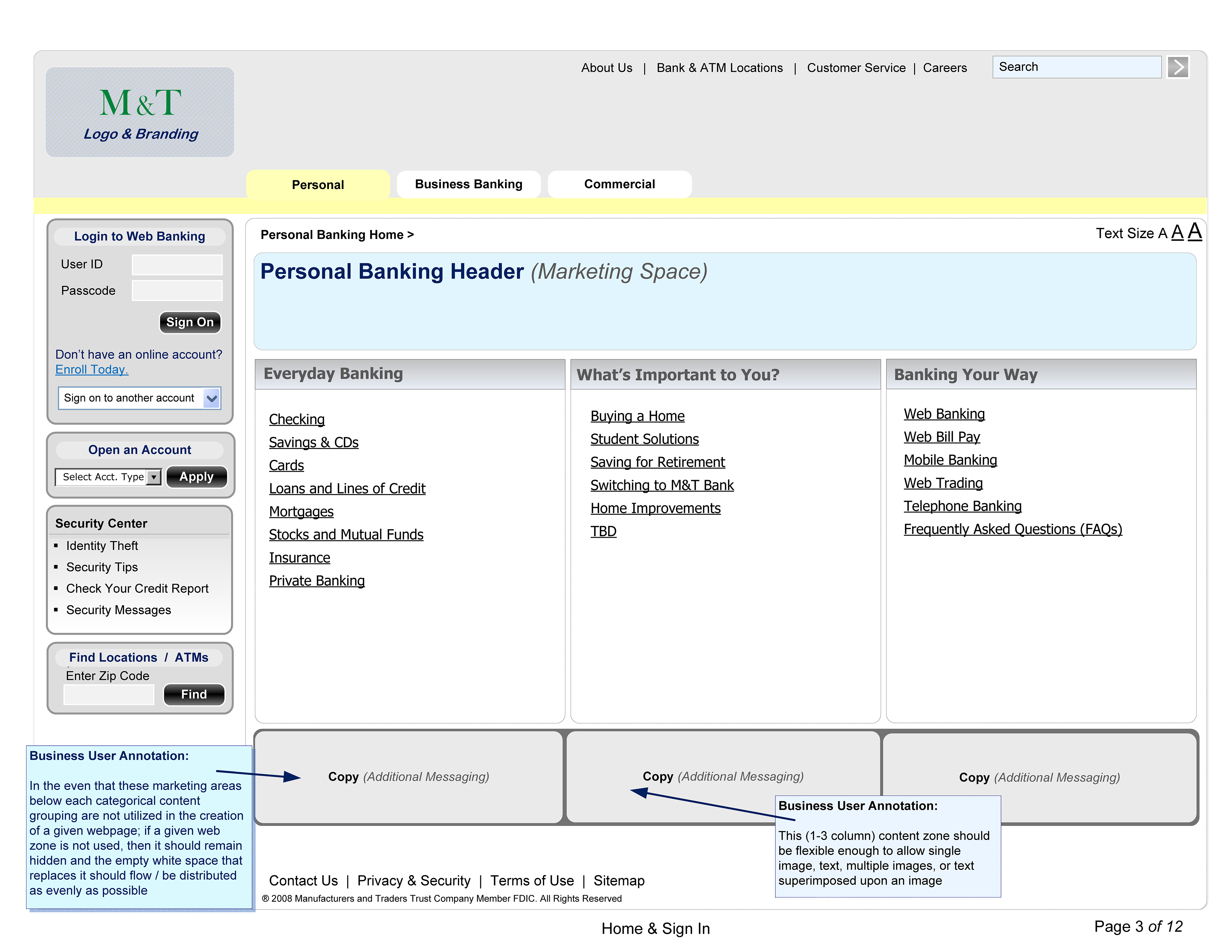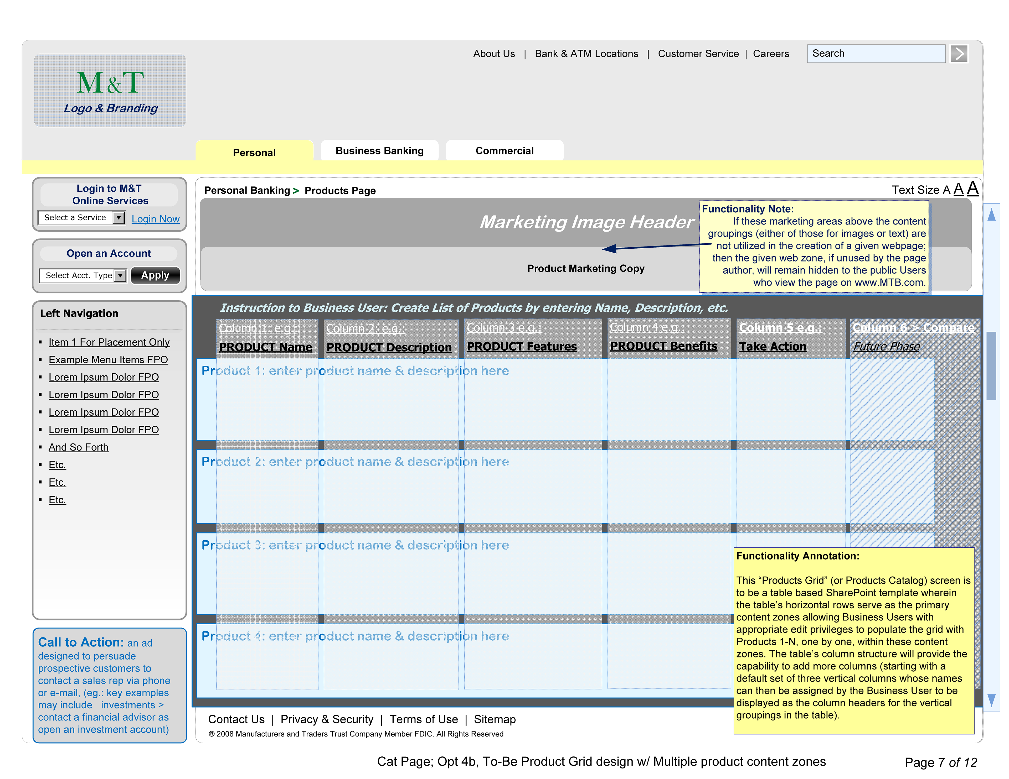 Wireframes for Banking Clients, M&T Public, FTB Ops
