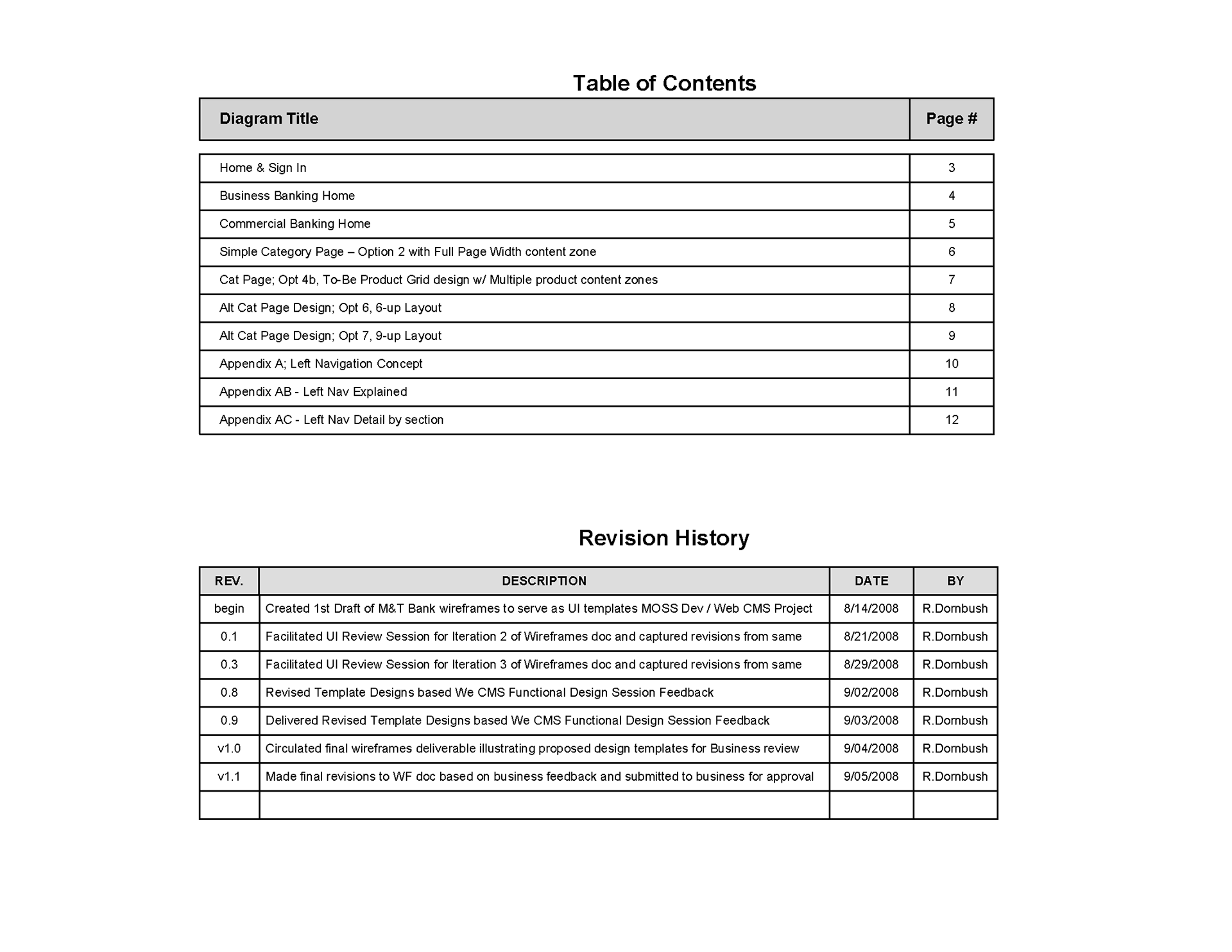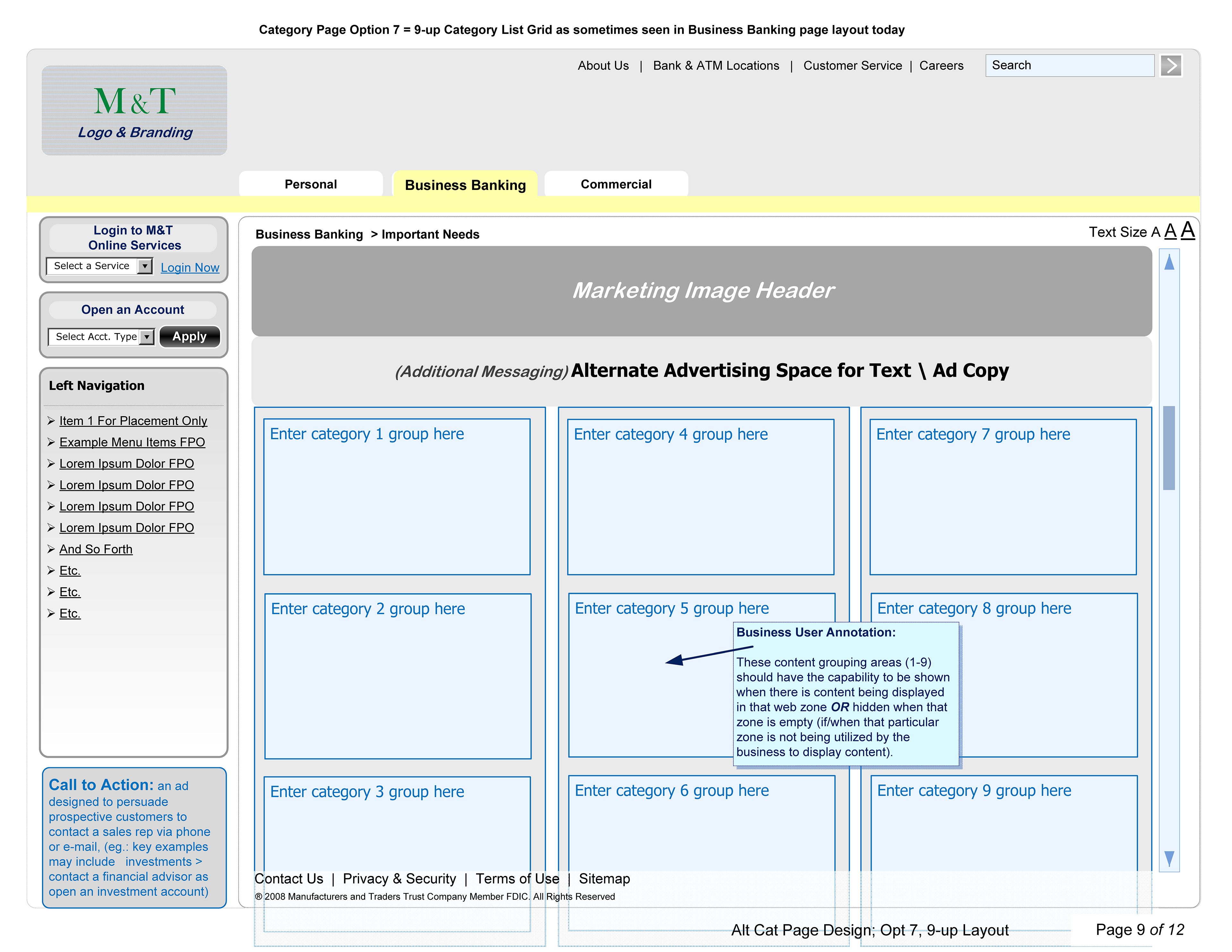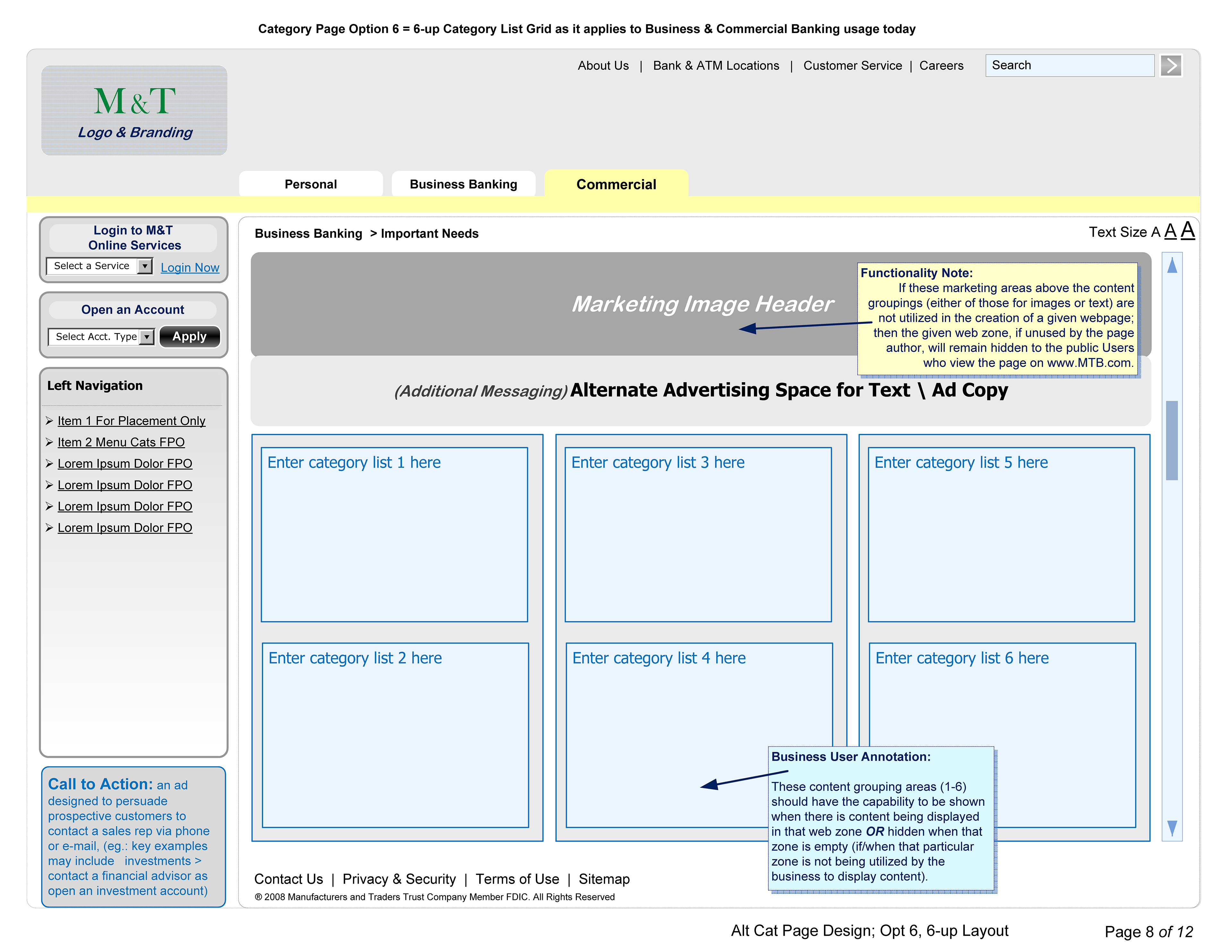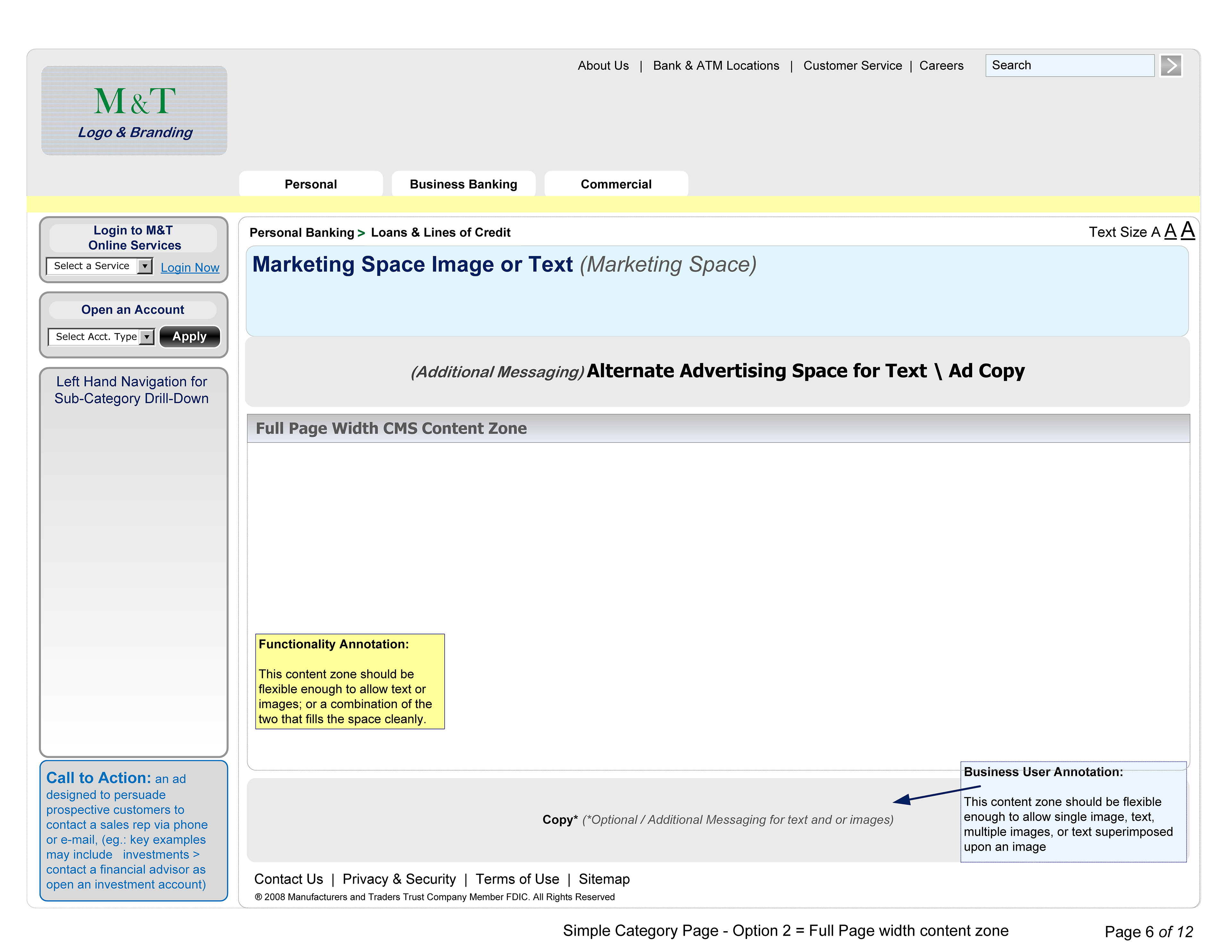 Wireframes for Banking Clients, M&T Public, FTB Ops